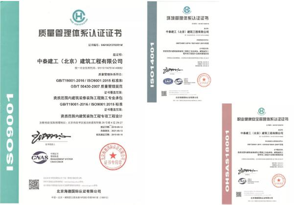 中泰建工目前擁有各類專業(yè)技術(shù)人次300余人,其中高、中級工程師100人,持證一、二級建造師59人,建委八大員100余人,并擁有各類大中型工程機械設(shè)備以及檢測儀器,具有國家“建筑工程”、“市政公用工程”、“機電工程”,三項施工總承包資質(zhì),建筑裝飾工程設(shè)計施工一體化等八項專業(yè)承包資質(zhì),并成功取得ISO9001質(zhì)量管理體系認證,ISO14001環(huán)境管理體系認證,OHSAS18001職業(yè)健康管理體系認證,被評為AAA級企業(yè),并于2018年順利晉級為國家級高新技術(shù)企業(yè)。